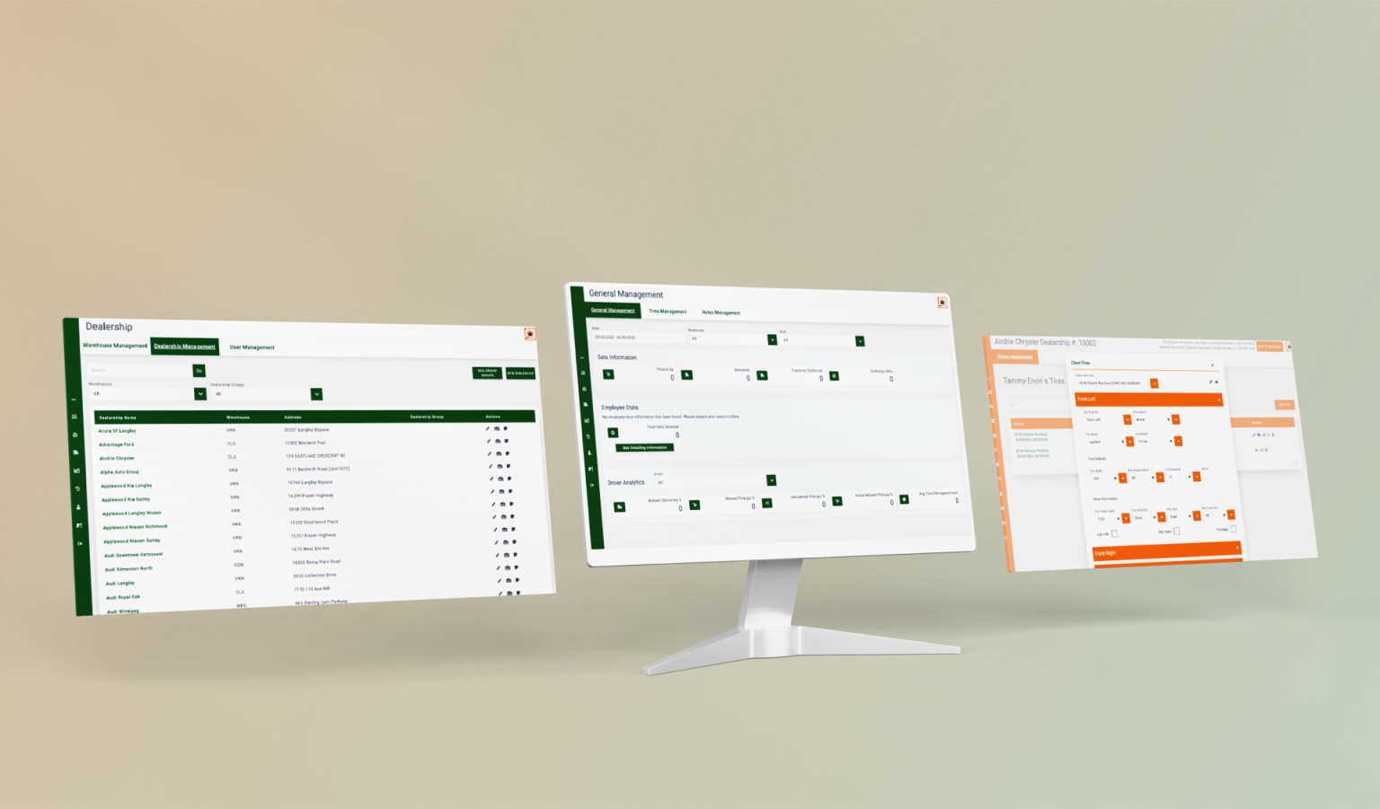 Of primary importance is an intuitive and accessible dashboard design for both car dealerships and system administrators. These dashboards populate information from expansive database systems that form the foundation of the platform. From these digital dashboards, appointments are created and managed. The appointments are collected into stops and routes are created using sophisticated algorithms and integrate with the Google Maps API.